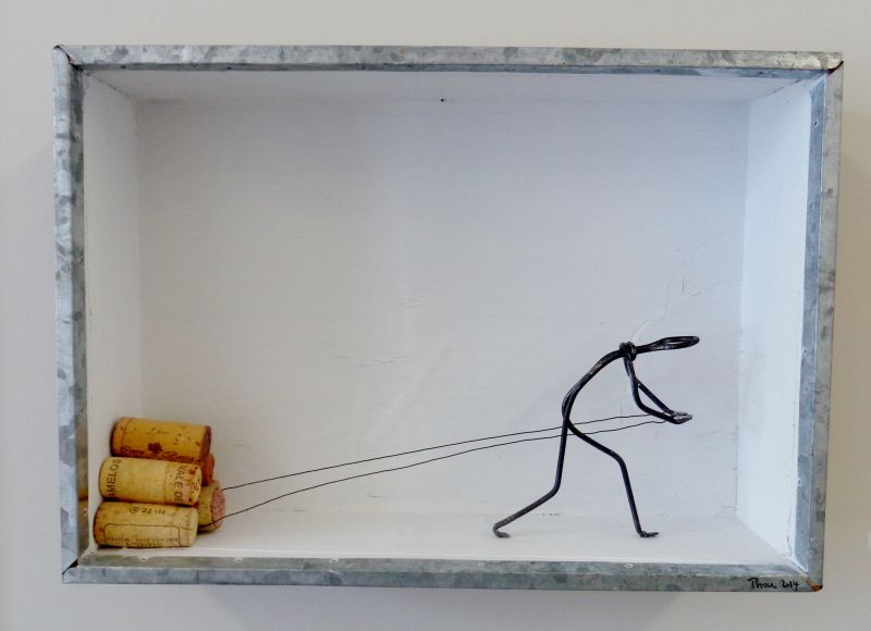 draht / korkzapfen / weinkiste / acryl