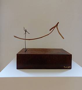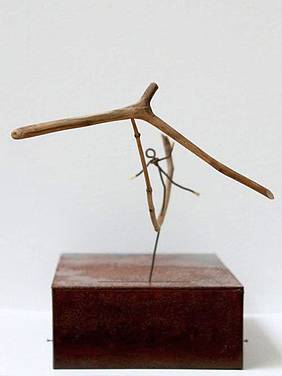 metall / schwemmholz / blattgold 24 kt / Elektromotor /das holzteil mit der figur bewegt sich hin und her